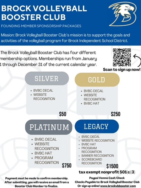 The mission of the Brock Volleyball Booster Club is to support the goals and activities of the volleyball program in Brock Independent School District.